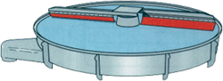轉(zhuǎn)刷清網(wǎng)系統(tǒng)依靠布置在篩網(wǎng)下的毛刷旋轉(zhuǎn)清網(wǎng),適用于球形、結(jié)晶體以及脆性物料,此機(jī)構(gòu)轉(zhuǎn)刷的支持臂由安裝在底盤(pán)上的減速器驅(qū)動(dòng)。
